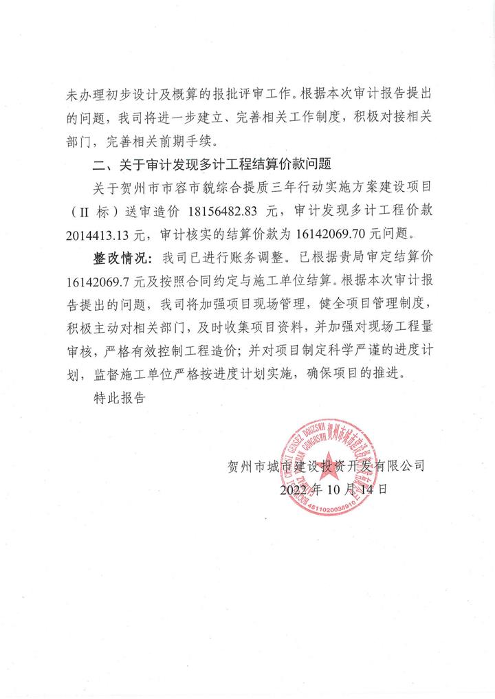 下一篇:城投集團關于賀州市長龍回建地小區道路工程結算審計整改情況報告公示