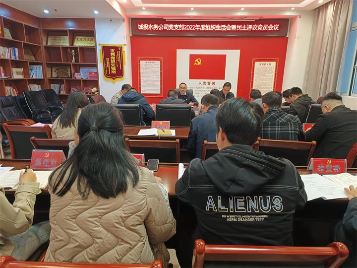 水務(wù)公司黨支部開展組織生活會,會議報告了2022年度黨支部工作情況和查擺問題整改落實(shí)情況,并以黨支部書記帶頭作個人檢查剖析,各黨員圍繞組織生活會主題深入開展批評和自我批評的方式,要求支部黨員以此次組織生活會為新的起點(diǎn),繼續(xù)貫徹落實(shí)集團(tuán)黨委的決策部署,立足工作實(shí)際,積極擔(dān)當(dāng)作為,為全方位推動集團(tuán)高質(zhì)量發(fā)展貢獻(xiàn)水務(wù)力量。