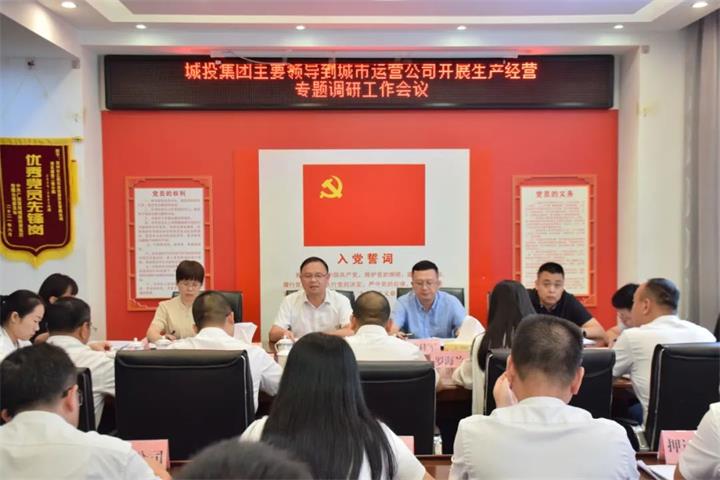 6月20日,城投集團黨委書記、董事長黃俊到城市運營公司開展生產經營工作專題調研并召開座談會。集團黨委委員、副總經理陳桂軍陪同調研。